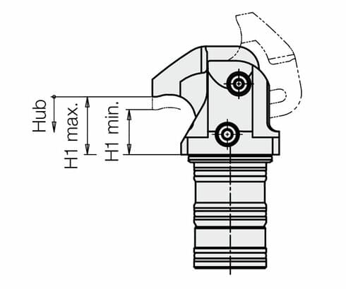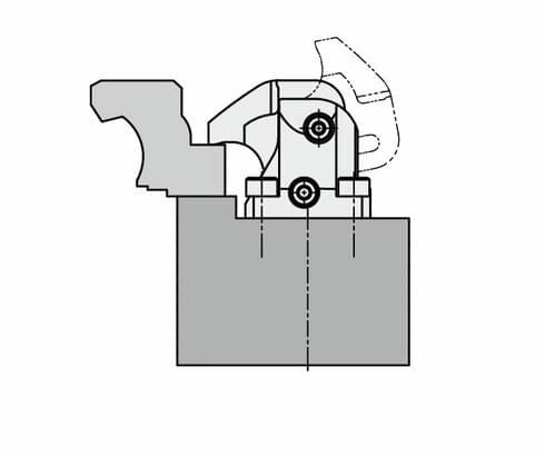 Con la pinza compacta no puede producirse ninguna fuerza lateral, ya que la palanca de sujeción sólo se mueve verticalmente en paralelo al eje del pistón. La palanca de sujeción solo gira fuera del rango de sujeción utilizable.