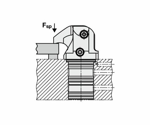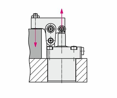 Si se utilizan palancas de sujeción más cortas, debe reducirse la presión hidráulica para no sobrecargar el mecanismo de palanca. En las hojas del catálogo encontrará los diagramas y fórmulas adecuados para calcular las fuerzas de sujeción y la presión de funcionamiento admisible.