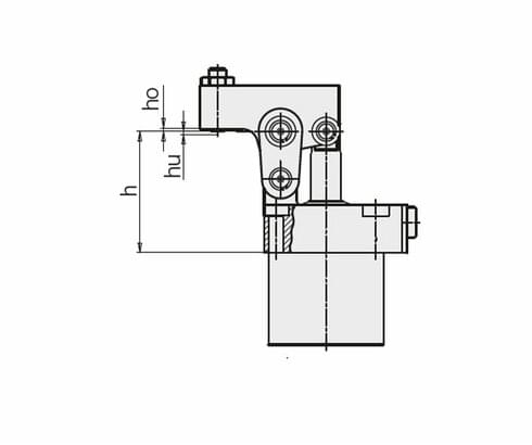 El rango de sujeción (ho + hu) es prácticamente la desviación tolerable de la altura de la pieza de trabajo. La palanca de sujeción sigue teniendo una reserva de carrera suficiente.