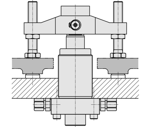 La cabeza de horquilla permite una presión máx. de servicio de 160 bar. Ventajoso es que bridas de sujeción relativamente simples pue­den fabricarse de material plano.