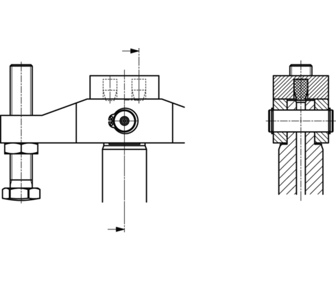 El pasador pendular robusto puede transmitir fuerzas de sujeción elevadas hasta una presión de servicio máx. de 500 bar. La brida de suje­ción doble debe dimensionarse según la carga.
