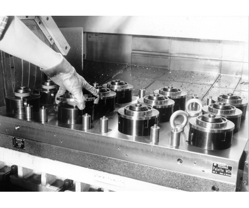 La transmisión de la fuerza de sujeción se efectúa mediante un elemento tensor de muelle elástico Ø 50 x Ø 17 x 32 mm de espesor. Las piezas a mecanizar se centran mediante la cabeza de la brida de alojamiento. En un tal dispositivo no se necesita ni una llave para tuercas ni la utilización de una arandela partida para efectuar la sujeción.