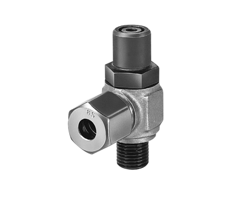Los racores codo orientables con estrangulación se utilizan para regular la velocidad de los cilindros hidráulicos. Existen dos ejecuciones según las necesidades. Estos son de las mismas medidas e intercambiables a los normales excepto en la altura que es mayor.
