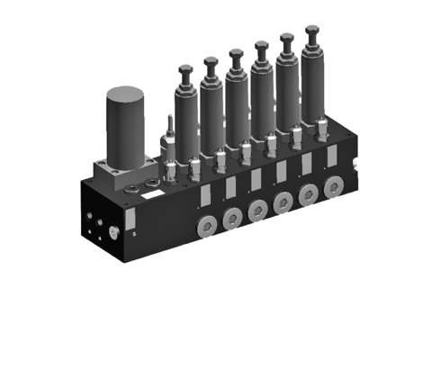 The valve module combination consists of an input module and up to four series modules (for linkage of further modules please consult us). The series modules can be equipped with different individual function elements.